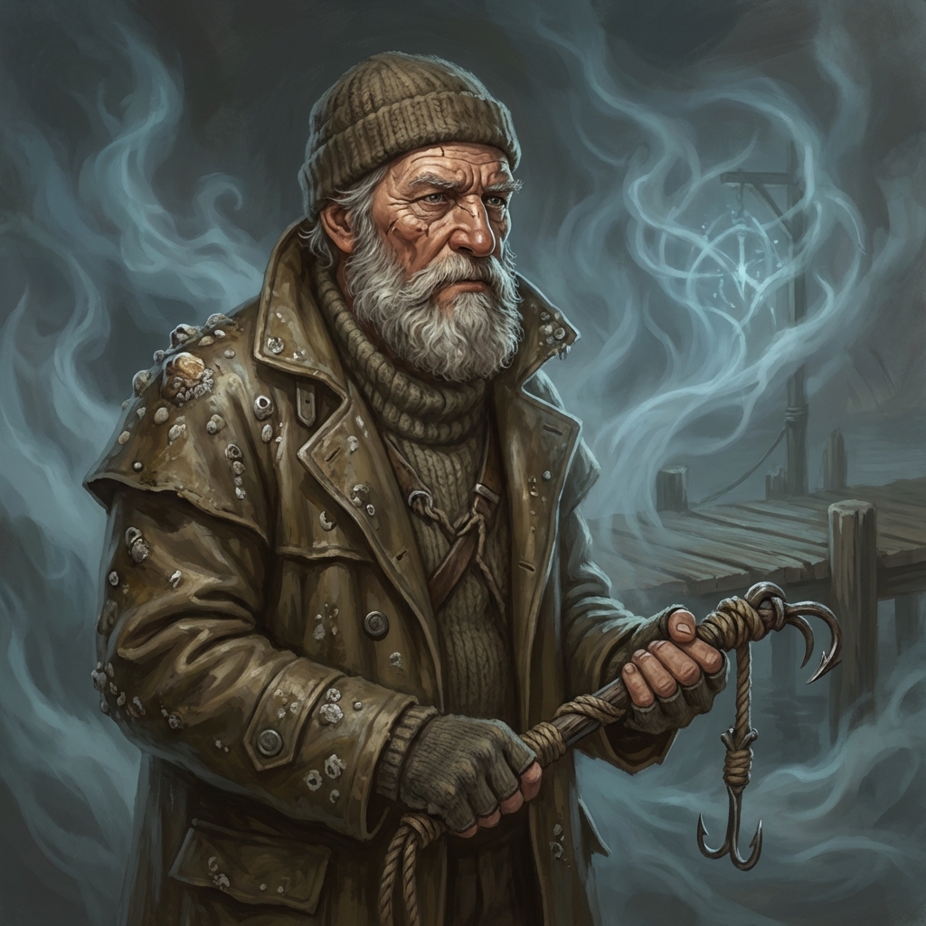 # Barnaby 'Barnacles' Thorne Barnaby is a fixture of the lower docks, his skin tanned and weathered by years of salt-spray and minor arcane burns. He